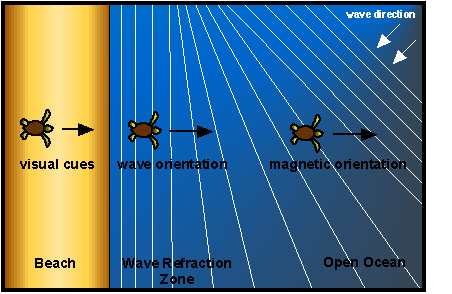turtles to maintain offshore headings even after swimming beyond the wave